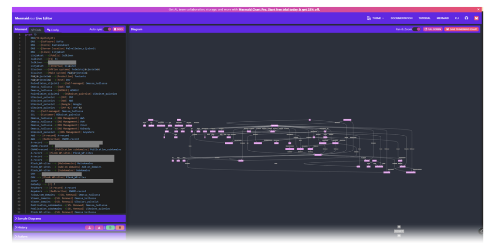 Työmme sisälsi: Uudistettiin ja hallittiin yrityksen hyvin laajaa palvelinkonaisuutta, joka sisälsi satoja Wordpress-sivustoja, niiden palvelimia ja domaineja. Vastuualueeseemme kuuluivat palvelimien pyöritys, ylläpito, verkkotunnusten uusinnat, tietoturva ja asiakaskohtaisten palvelinratkaisujen toteutus. Vastasimme myös asiakkaan kustomoidun digilehti-järjestelmän toiminnasta ja digilehtien lähetyksistä.