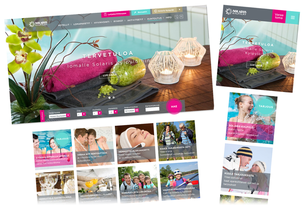 Työni sisälsi: Sivulisäyksiä, sisältöpäivityksiä, seurantatagi asetuksia, seo-optimointia, uutiskirjelähetyksiä, sekä spa.fi-varaamon ylläpitotoimia.